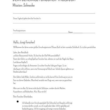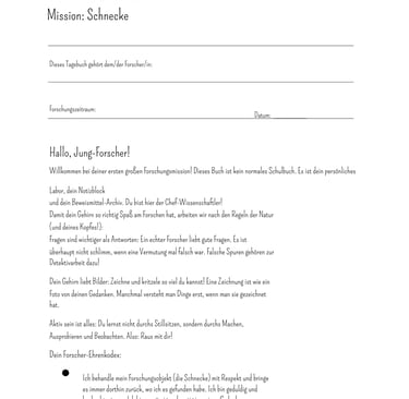 Verwandle deinen Garten in ein Labor! Mit diesem Tagebuch wird dein Kind nicht nur zum Beobachter, sondern zum Chef-Wissenschaftler. Die Mission: Alles über die Schnecke herausfinden – aber streng wissenschaftlich!