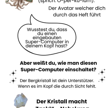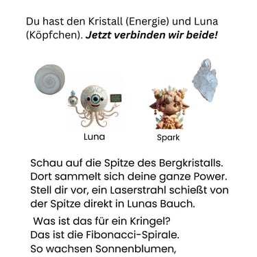 "Luna ist das Herz von WissensWunder. Sie existiert nicht nur auf dem Bildschirm, sondern auch als echter Schatz (Operculum & Bergkristall) in deiner Hand. Sie verbindet dein Übungsheft mit der digitalen Welt und passt auf, dass du dich wohlfühlst.