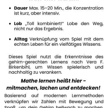 Wir bieten ein pädagogisches Spiel, das Kindern zwischen 5 - 7Jahren Jahren spielerisches Lernen ermöglicht. Ideal für Schulenund Kindergärten, fördert es Kreativität und sozialen Umgang.